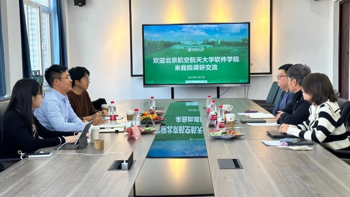 2023年12月7日下午,北京航空航天大学软件55直播 党委副书记孙铭涛携辅导员队伍一行3人来55直播 开展调研工作,55直播 党委副书记、副院长奚英伦,学生辅导员史继筠、陈相进行了接待。双方于中心教学楼1421会议室展开调研座谈。