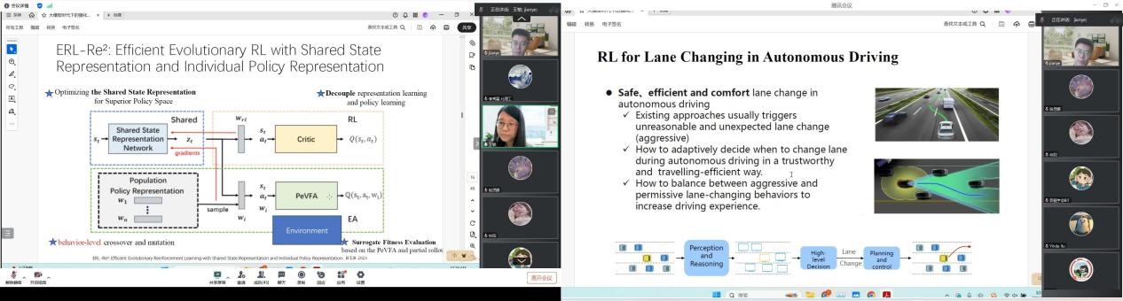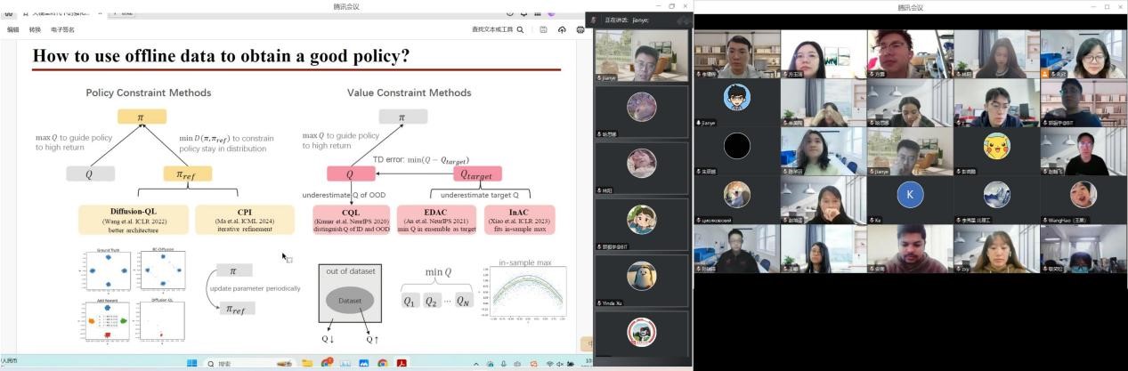 郝建业老师首先回顾了传统的强化学习范式,即在线强化学习和离线强化学习,并探讨了在当前大模型时代下,传统的强化学习范式仍扮演着重要角色,在决策领域演化出“离线预训练”和“在线微调”的新型范式。立足于上述两种强化学习范式,郝老师分别从智能体与环境交互构建马尔可夫决策过程(MDP)的角度出发,讨论了在线强化学习如何利用策略表征、世界模型、数据增强和高效的探索策略采样高质量样本数据;以及基于Transformer和扩散模型等主干网络使智能体通过离线强化学习获得泛化性更好的策略。同时展示了其团队最新设计的包含5种人类反馈类型和30多种仿真环境、用于提升离线强化学习效率的通用平台——Uni-RLHF。此外,郝建业老师还探讨了如何将离线和在线强化学习技术结合,应用于具身智能、自动驾驶和芯片设计等实际工业场景,并分享了其团队成果在现实环境下的多个应用,例如部署在会议室中用于物品布置的机器人、部署在智能驾驶车辆中用于变道决策的多智能体、以及部署在芯片设计中用于元器件布局的优化工程。最后,郝老师总结了本次报告的内容,并结合切身体会向大家传授了在55直播 路途上的一些经验,在引发全场强烈共鸣的同时给予了大家深远的启示。