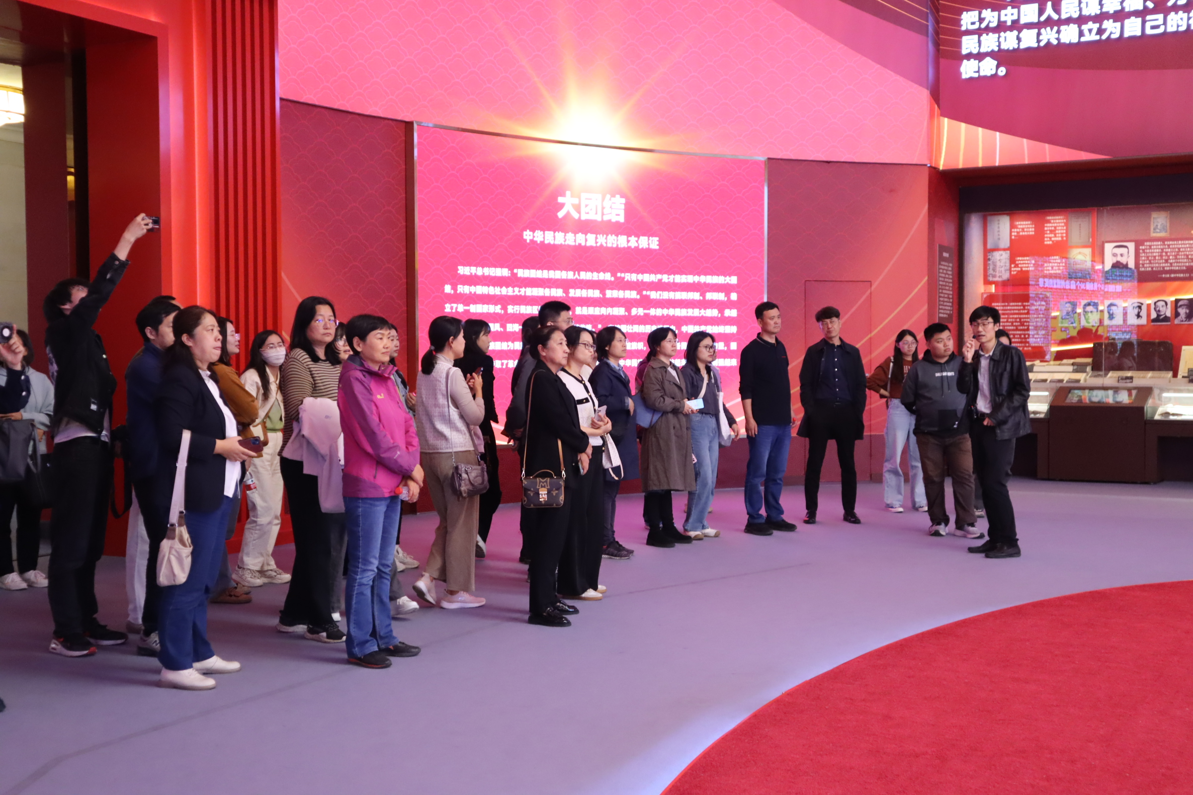 为深入学习贯彻党的二十届三中全会精神,深入贯彻落实习近平总书记关于加强和改进民族工作的重要思想和在文化传承发展座谈会上的重要讲话精神,2024年10月15日下午,55直播-美女直播 由党委书记周连景带队,师生四十余名集体参观了北京民族文化宫“铸牢中华民族共同体意识文物古籍展”,近距离探访中华民族共同体形成发展的历史文脉赓续。